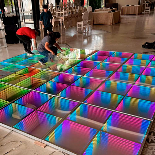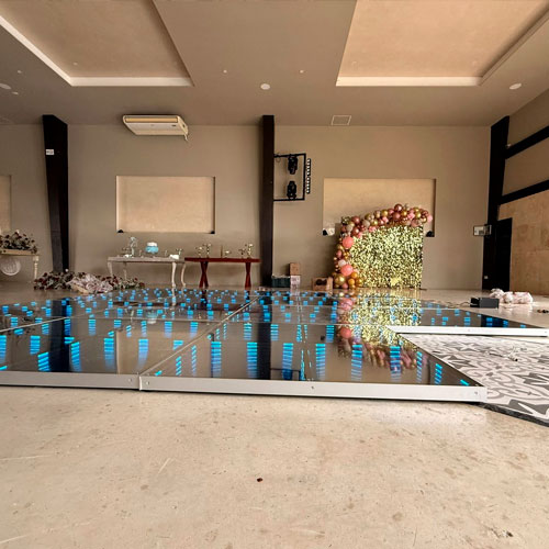 Nuestras pistas de baile iluminadas son el elemento definitivo para elevar la energía de cualquier celebración al convertir el centro de la reunión en un espectáculo visual dinámico y sofisticado que invita a todos a moverse. Fabricadas con paneles de alta resistencia y tecnología LED de última generación estas pistas permiten crear atmósferas personalizadas que se sincronizan con el ritmo de la música y la temática específica del evento para lograr una experiencia totalmente inmersiva. Su diseño modular no solo garantiza una superficie estable y segura para los invitados sino que proyecta una imagen de alta producción que transforma salones convencionales en escenarios tecnológicos de primer nivel asegurando que los momentos más importantes de la noche brillen con luz propia. Es la inversión ideal para bodas graduaciones y eventos corporativos que buscan dejar una impresión duradera vibrante y profesional en cada uno de sus asistentes.